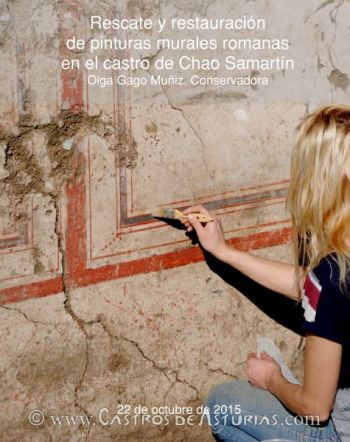 El próximo jueves, 22 de octubre de 2015, dentro del ciclo de conferencias que el Museo Arqueológico de Asturias organiza en torno a la exposición “DOMVS. Una casa romana en el castro de Chao Samartín” y el 25 aniversario del comienzo de las excavaciones arqueológicas en Grandas de Salime, le corresponde a la restauradora Olga Gago Muñiz tomar la palabra para hablar acerca del “Rescate y restauración de pinturas murales romanas en el castro de Chao Samartín”.